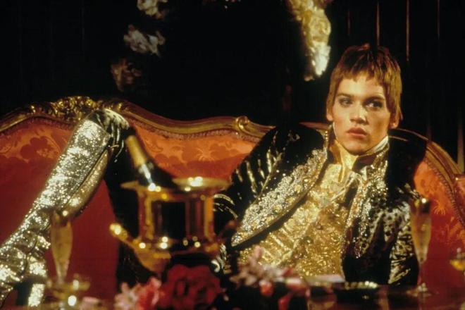 Tilda Swinton在《奥兰多》戏服中,展示了从伊丽莎白时代到1990年代的时光跃动以及性别流动。Jonathan Rhys Meyers 在《天鹅绒金矿》中饰演 Brian Slade,其戏服与舞台设计交织成视觉艺术。