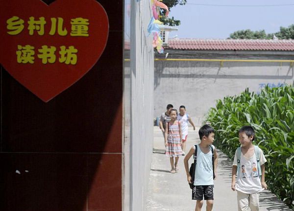 7月25日,在河北省邢台市桥西区东马庄村,小学生前往“乡村儿童读书坊”阅读。 近日,为方便乡村儿童阅读书籍,桥西区东马小学启动“乡村儿童读书坊”活动。该校在13户村民家中设置书架,并分发千余册图书,方便附近居住的学生前去阅览。