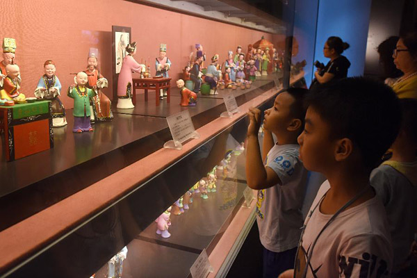 7月25日,小朋友们在广东省博物馆的广东历史文化展厅内参观。 暑假期间,不少孩子来到广东省博物馆,通过参观文物,学习广东地方历史、民俗文化,丰富暑期生活。